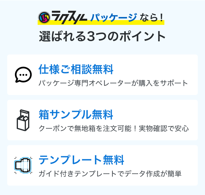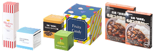 紙箱・化粧箱は、いわゆる商品パッケージとして使われることが多く、装飾・デザインを通して、商品に付加価値やブランド力をもたらします。