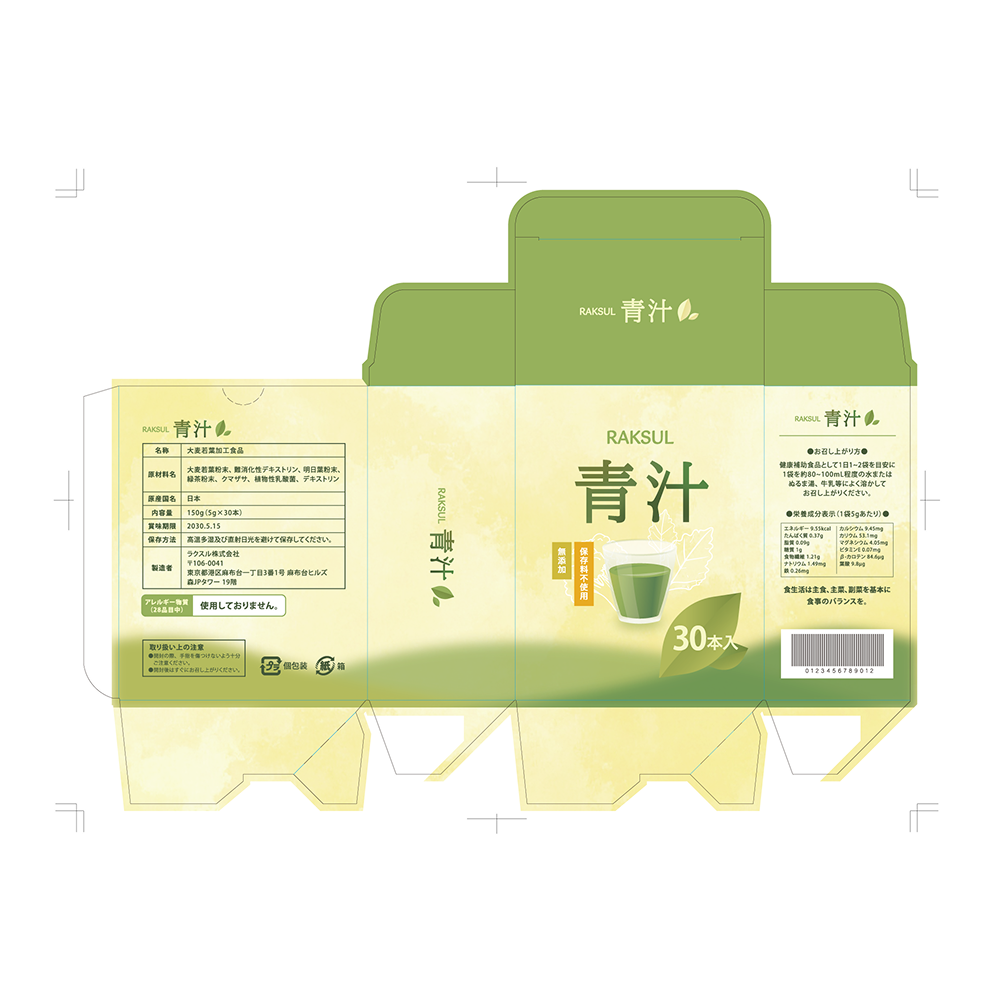 青汁などの健康食品で1ヶ月分のスティックタイプ商品の化粧箱としてワンタッチ底がよく使われます。納品先のOEMから指定されることも多い形状です。
