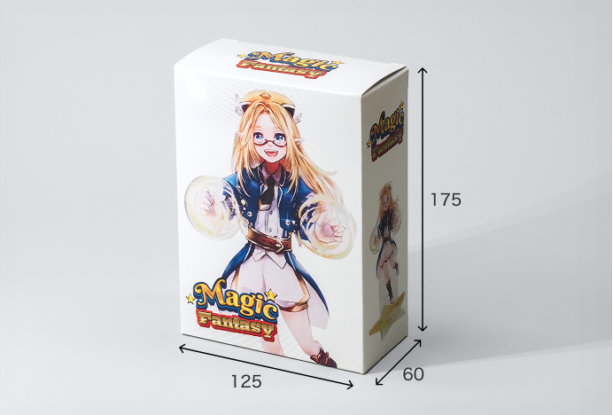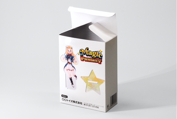 アクリルスタンドなどのグッズや雑貨に適した縦長のワンタッチ底です